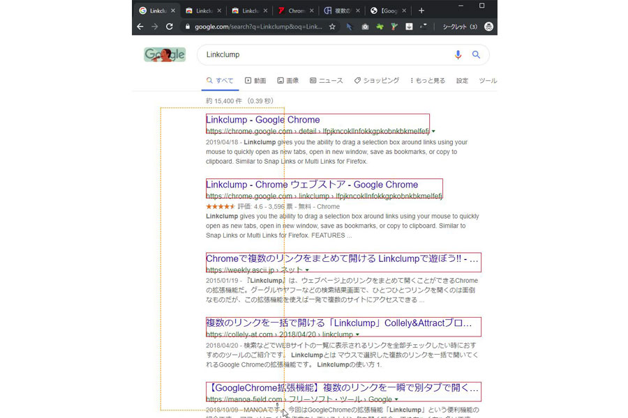 本ページは 旧バージョンの Linkclump に関する記事です。現在、旧Linkclumpは Chrome の仕様変更により、正常に動作しない場合があります。
