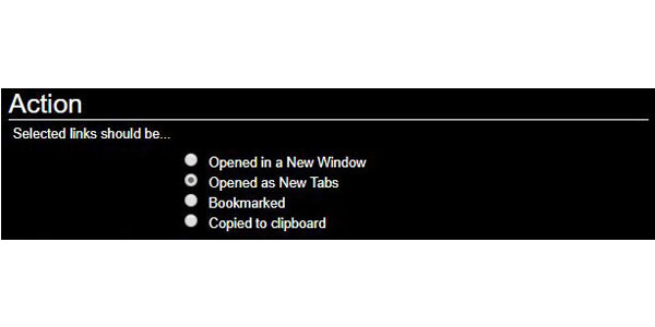 一括で選択したページリンクは、デフォルトでは新タブとして開きますが、別の開き方も選択できます。
