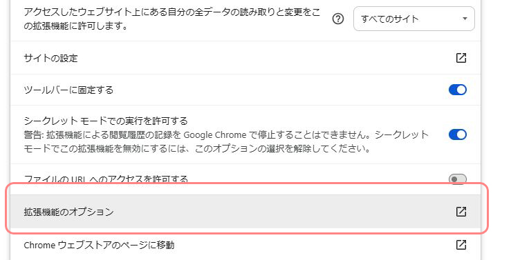 インストール後に確認してみると、以前使っていた設定がそのまま残っていました。(Chrome拡張機能の管理画面 > 拡張機能のオプション から確認可能)