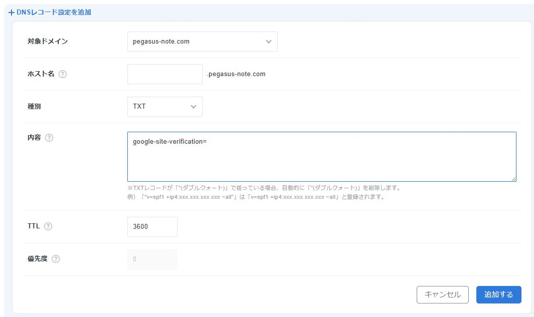 DNSにTXTレコードを追加して所有権を確認するまで