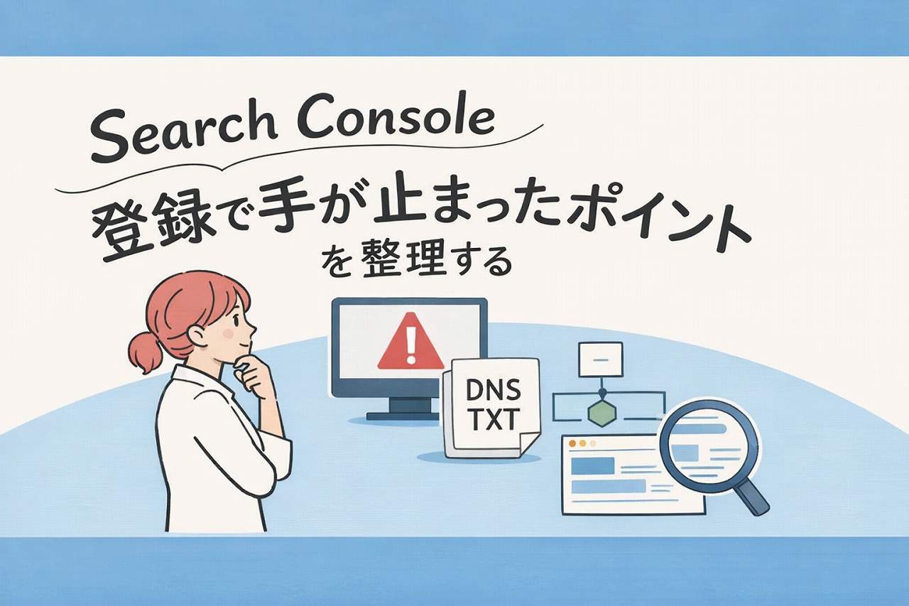 この記事では、Search Console登録時に実際に確認が必要だったポイントを、作業の流れに沿って記録しています。