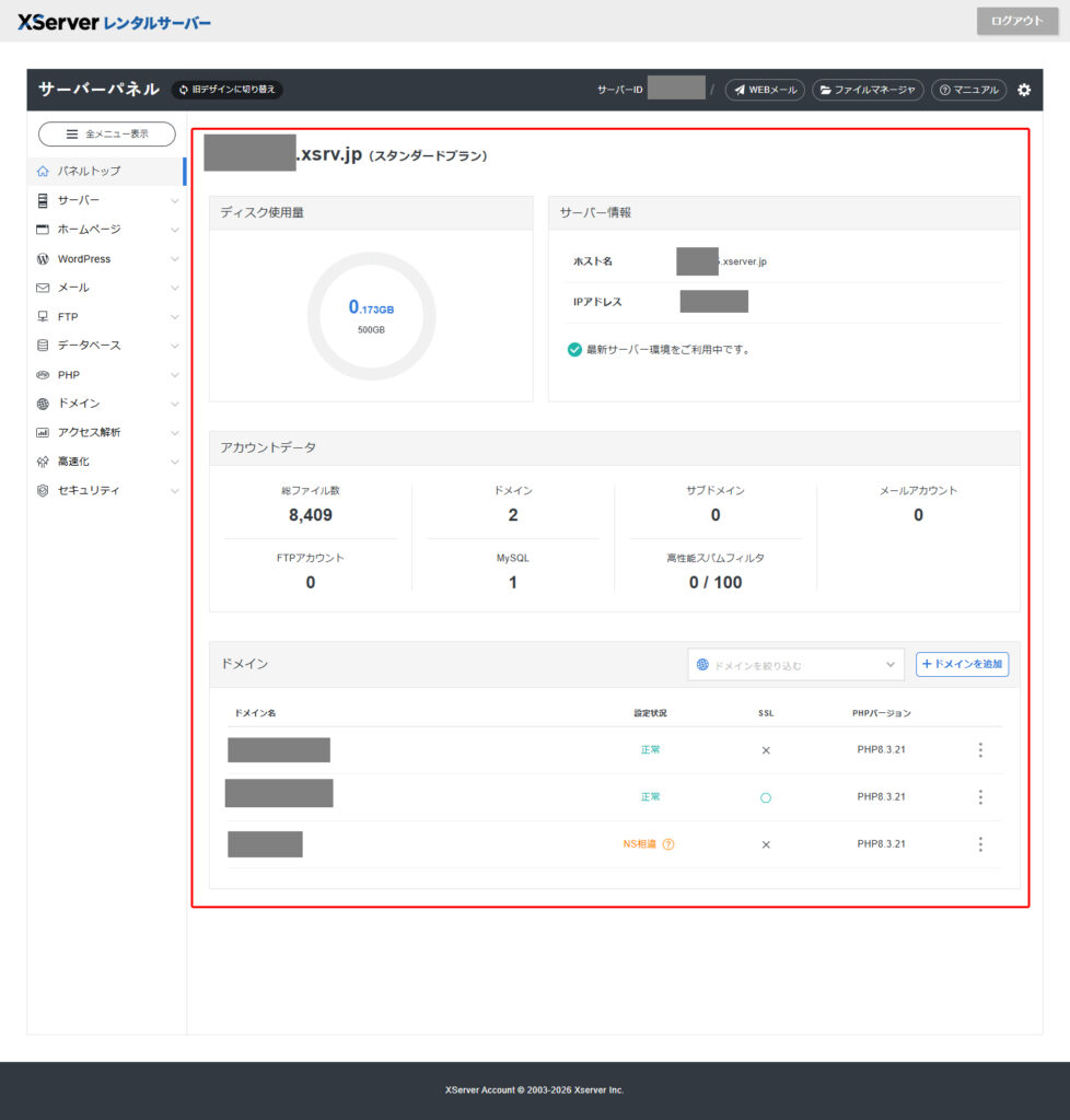 Xserverの新サーバーパネルは、左メニューに機能がぎゅっと詰まっています。ただ、最初は「どれが重要で、どれは触らなくていいのか」が分かりづらいかもしれません。