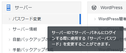 - XserverアカウントID- 当機能では「サーバーID」でログインする際に使用するパスワードを変更することができます。