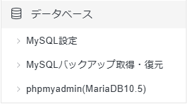ちなみに、データベース側の「MySQLデータベース」バックアップは、MySQL設定/バックアップ取得・復元 から取得可能です。